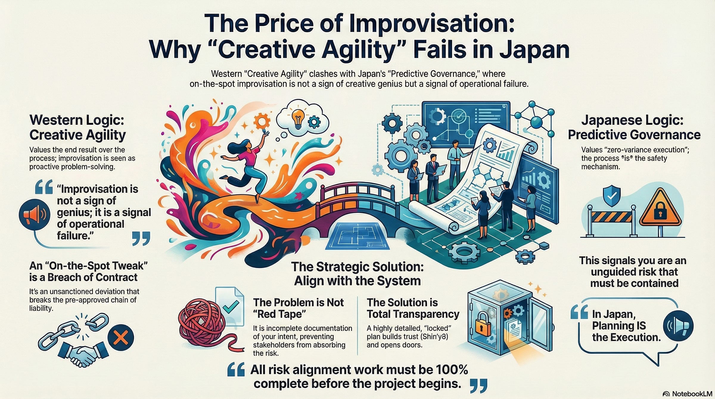 In Japan, improvisation is not a sign of genius; it is a signal of operational failure.