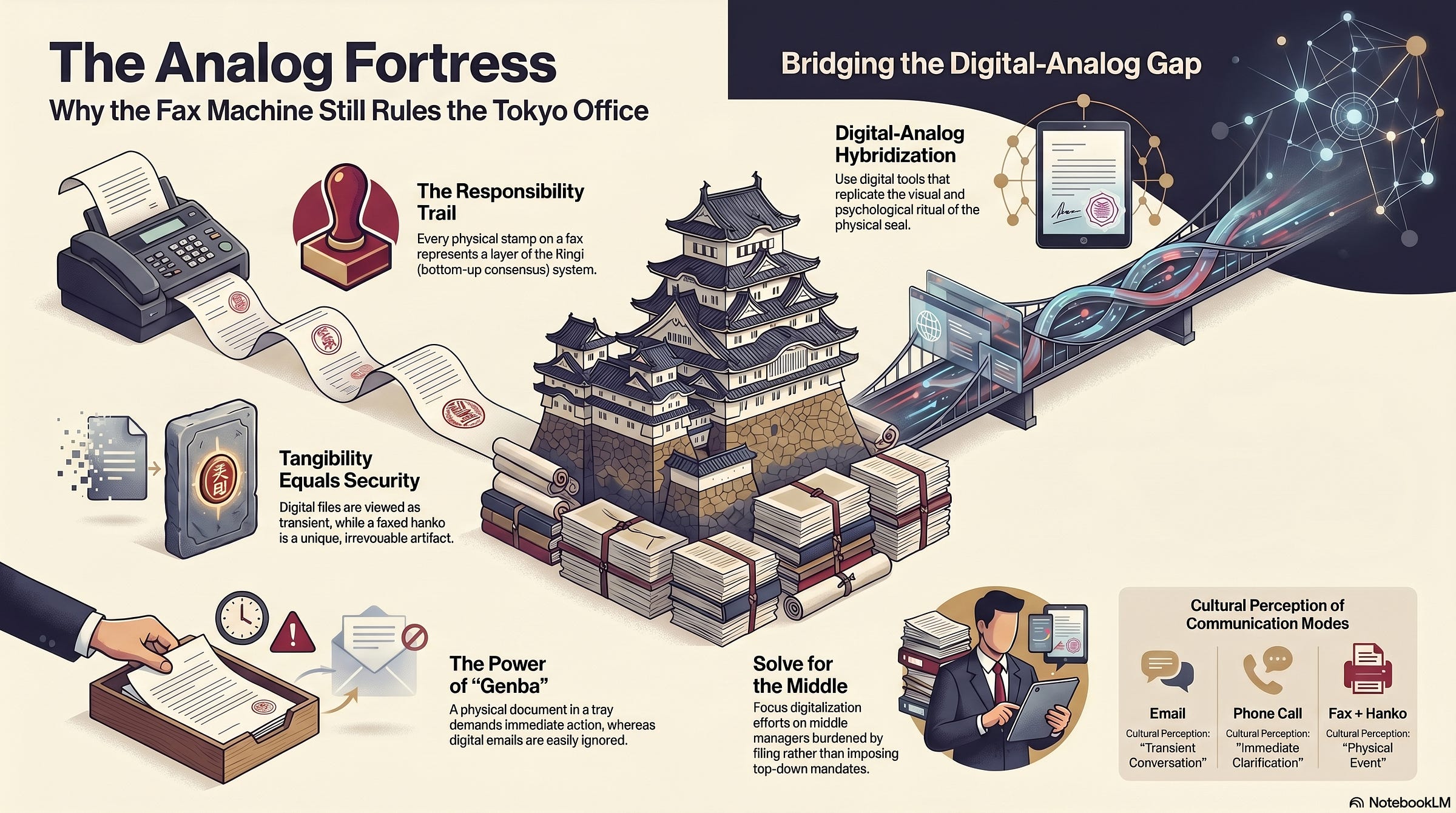 For the global executive, the challenge is to introduce digital efficiency without triggering the “corporate antibodies” that protect the analog status quo. If you attempt to force a purely digital workflow on a traditional Japanese partner, you are not just suggesting a new tool; you are suggesting a new and to them, less secure social contract.