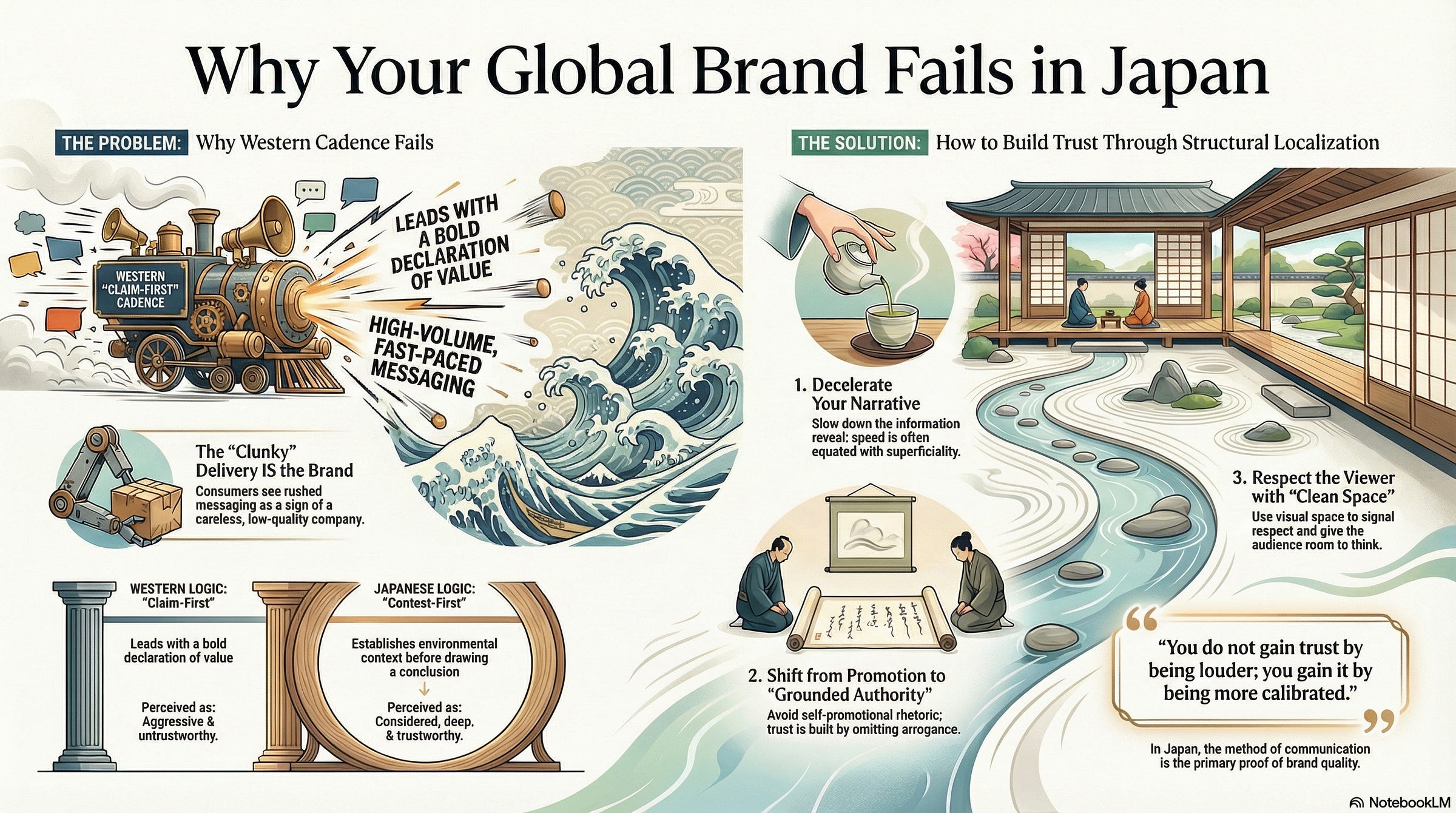 Your brand is currently invisible in Japan not because your story is weak, but because your rhythm is disruptive. Until you decouple your “Global Strategy” from your “Western Cadence,” your messaging will continue to function as noise rather than authority. In this market, you do not gain trust by being louder; you gain it by being more calibrated.