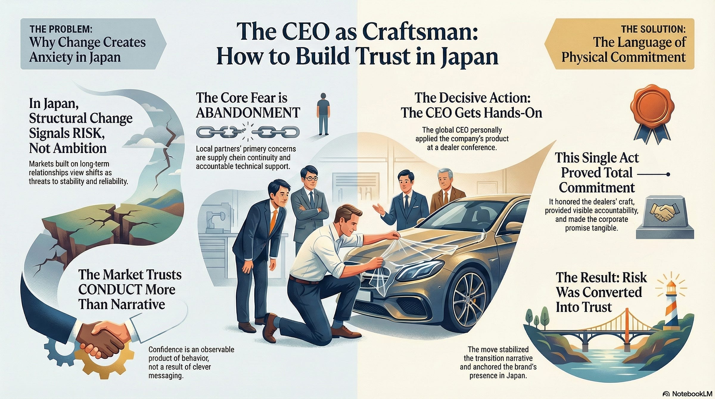 This case provides a critical, universal principle for executives struggling in the Japanese market: Change creates vulnerability; behavior converts it into trust.