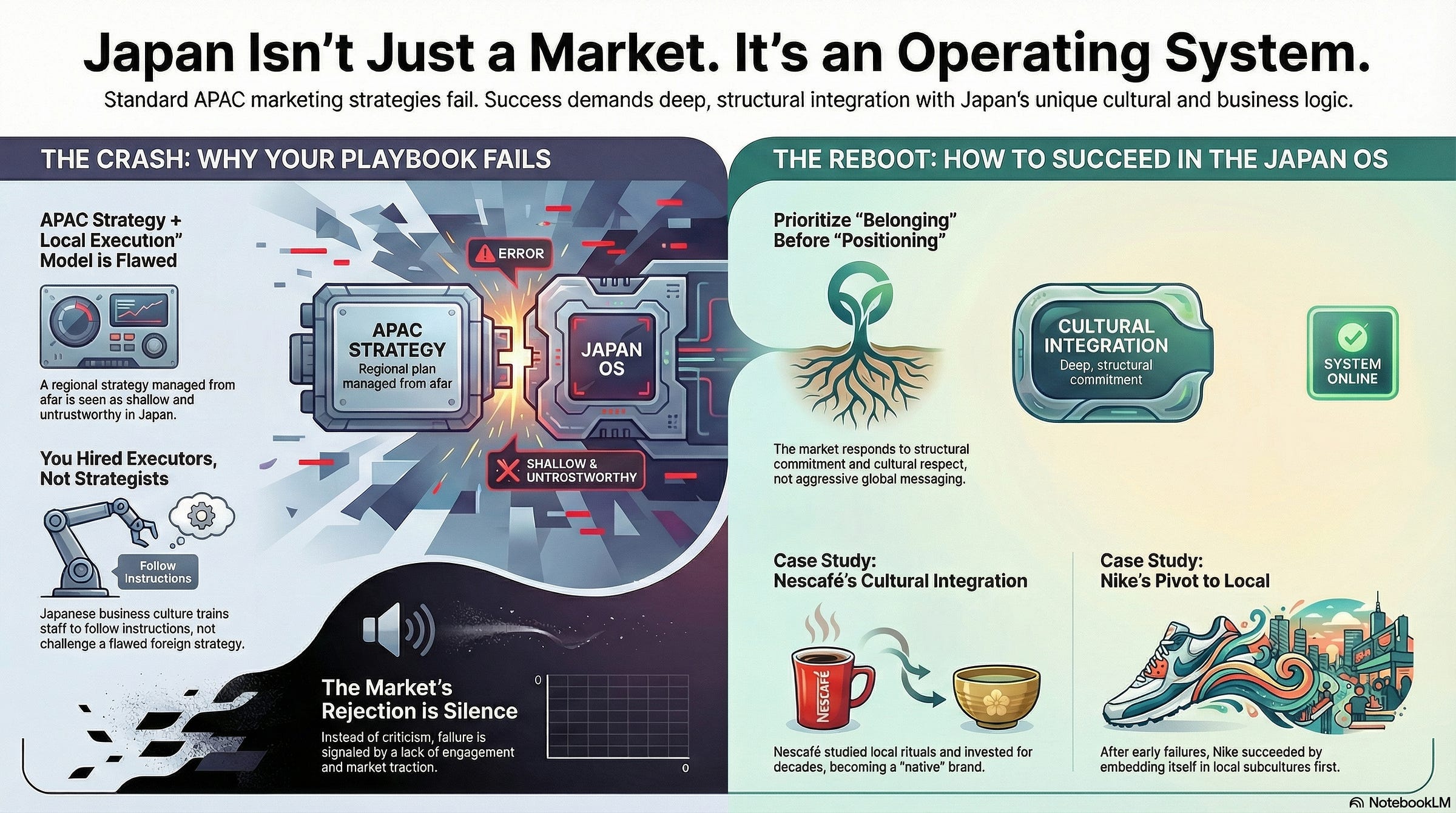The campaigns my friend’s team used worked flawlessly across Southeast Asia. They collapsed in Japan because they relied on external frameworks the local system does not value.