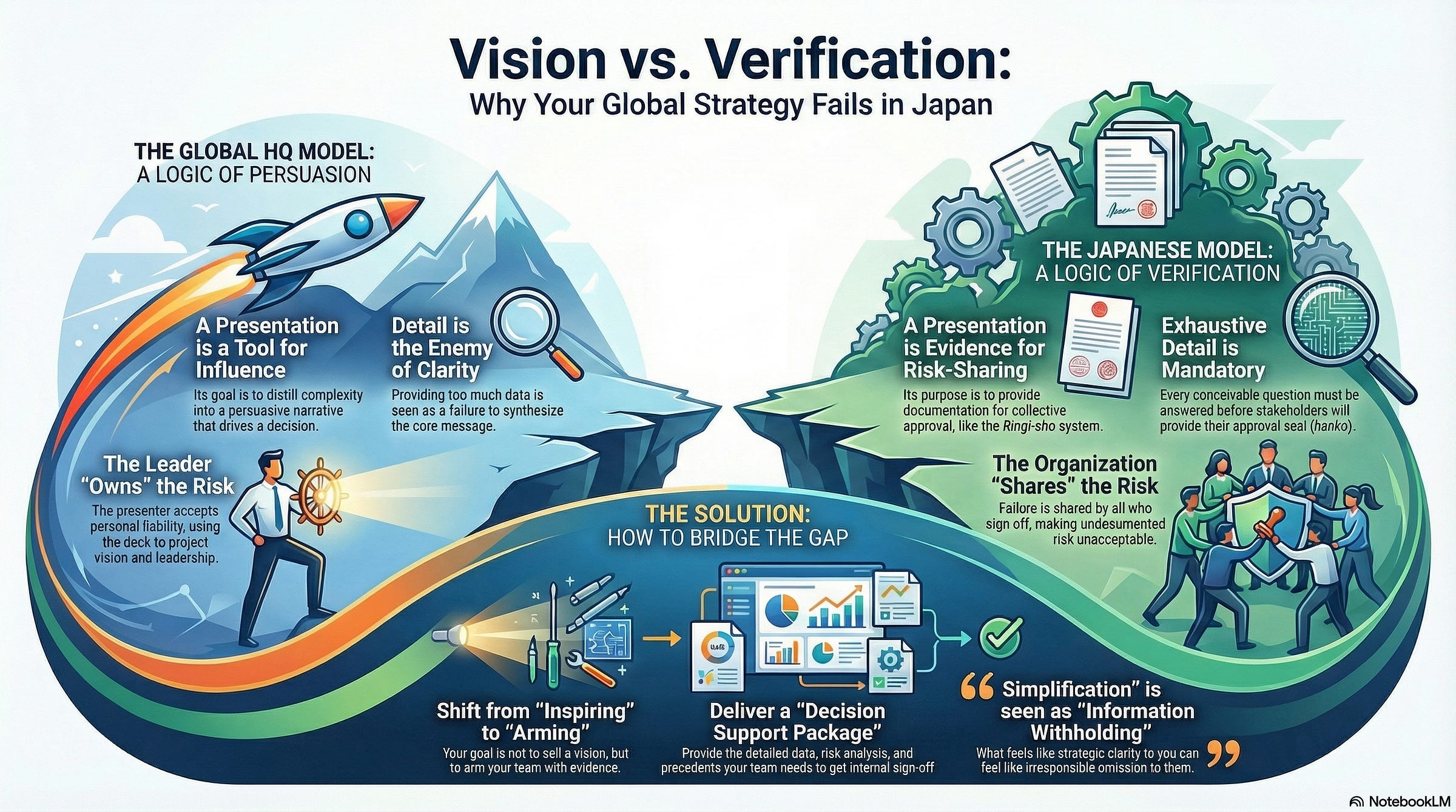 Global presentations fail in Japan because they prioritize narrative momentum over documentation, leaving local teams with the liability of the decision but none of the evidence required to defend it. Until you provide the exhaustive “how,” your “why” will remain a source of strategic paralysis rather than a driver of growth.